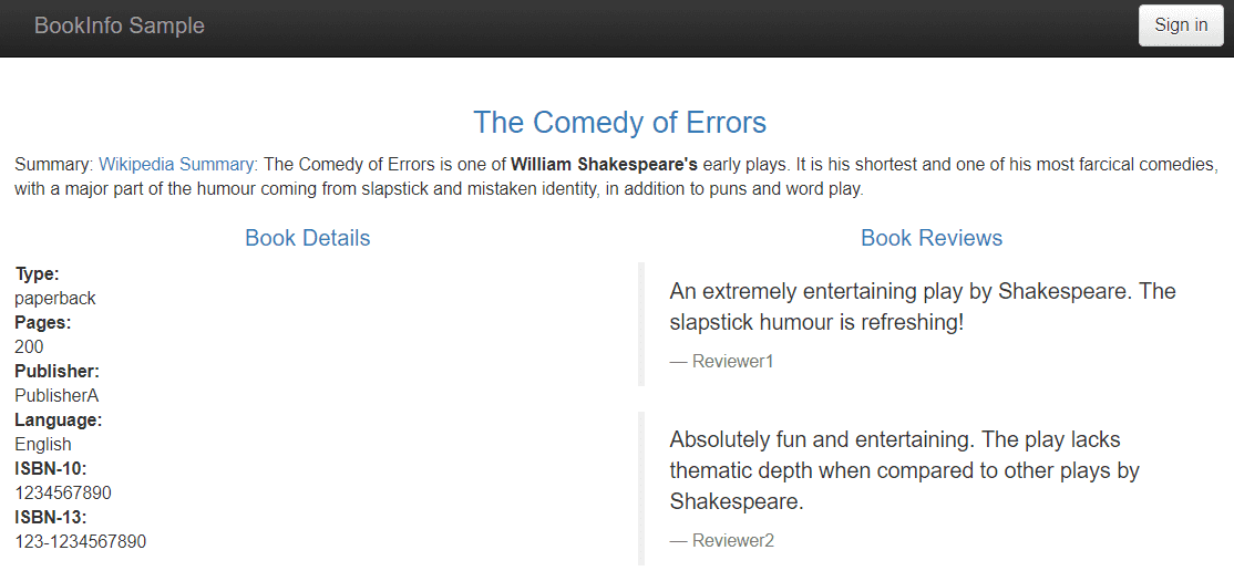 在浏览器中打开应用程序页面,地址为istio-ingress的External IP。由于V1版本的reviews服务并不会调用rating服务,因此可以看到Product 页面显示的是不带星级的评价信息。