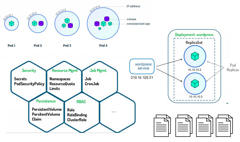 图1: Wordpress应用程序中涉及到的kubernetes API对象