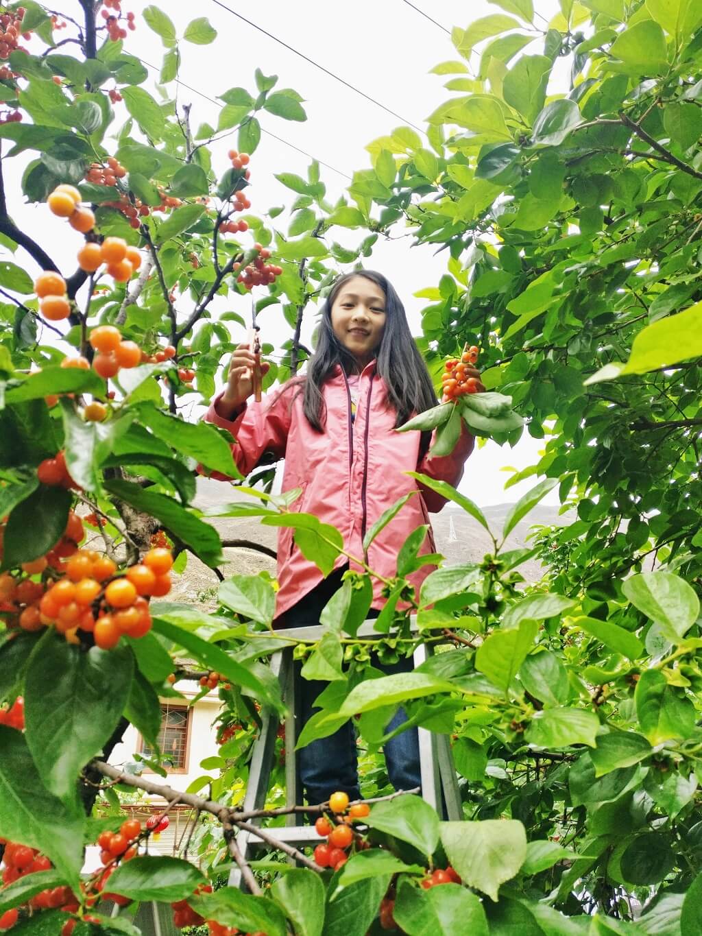 树上结满了樱桃,别看樱桃树不高,一棵树可以产两百斤樱桃。