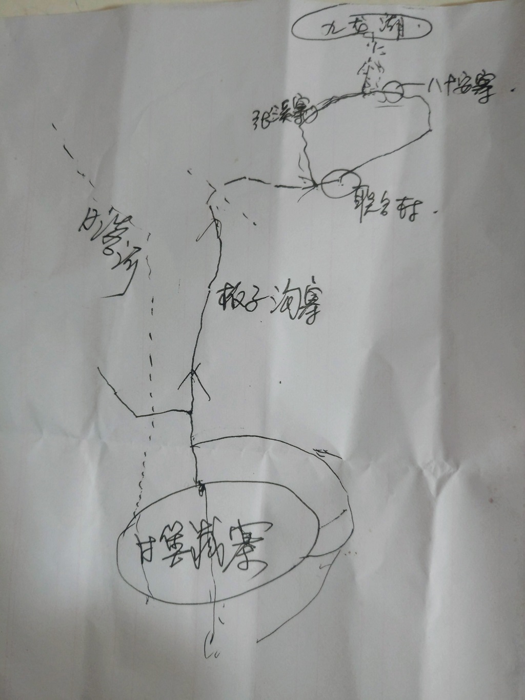我逛完寨子,其余人也收拾妥当了。向老板告辞后,我们准备向九龙湖进发。细心的老板怕我们找不到地方,特意给我们画了一张地图。