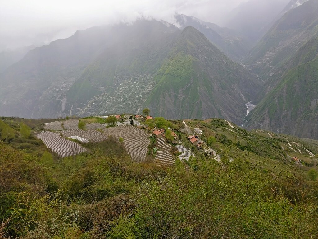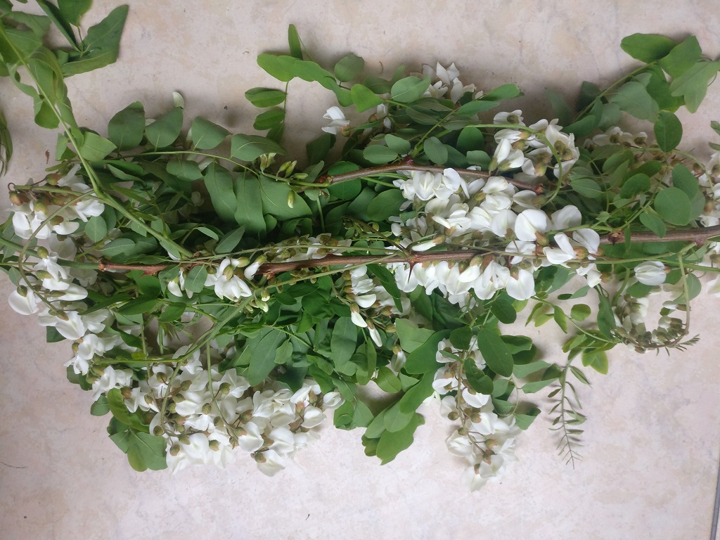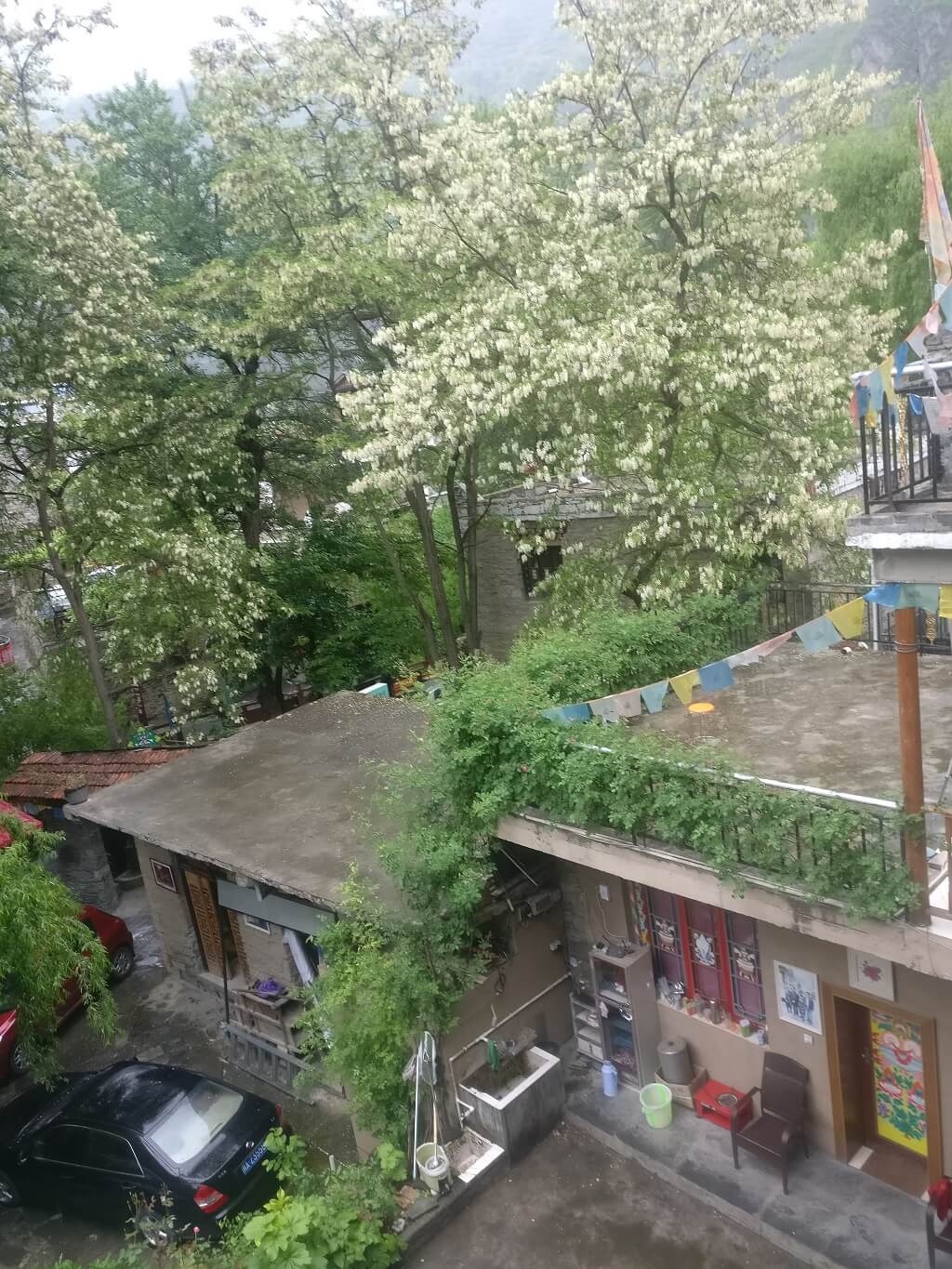 山路两边的风景很美,低海拔地区有很多樱桃树,核桃树以及开满了花的洋槐树。洋槐花蜜过一段时间就会上市了,很香的。我们摘了一些花带回家,杨槐花焯水后可以炒蛋,也可以和在面里面吃。