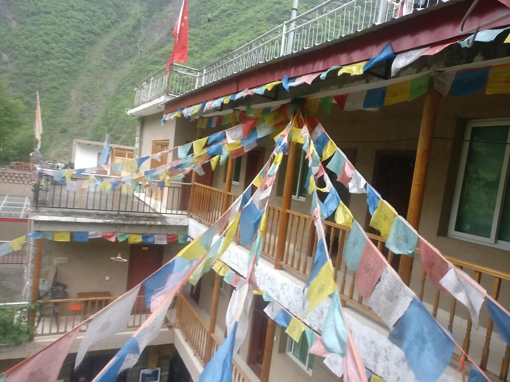 最后一个靠小河边的藏家乐入住,一个标间240元,包3个人一顿晚饭,一顿早饭。我和朋友两家分别在二楼和三楼的两间房间住下。这里得表扬一下领导,每次出来耍选择的住宿都挺好,性价比高,住着也舒服。
