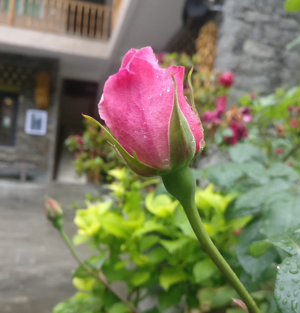 老板的三层小楼,这里的修房的材料不是砖头,而是就地取材用山上的片状岩石修砌而成的,很有特色。