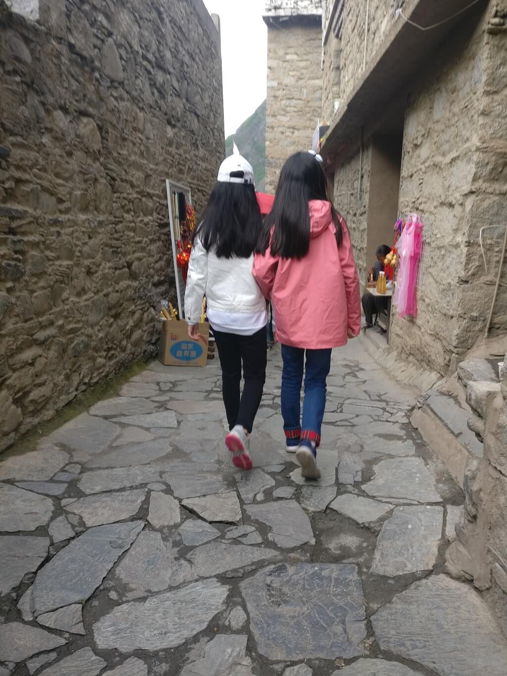 昨晚虽然睡得不是很熟,但藏家院子里空气清新,精神恢复得很快,我没到七点就醒了。起床和大家一起吃了早饭,早饭是烤馍,鸡蛋,咸菜和稀饭。吃完饭后,陪孩子们去寨子里逛了一下。寨子不大,半个小时就能走完,街上摆着一些小摊,售卖一些民族特色的小饰品。
