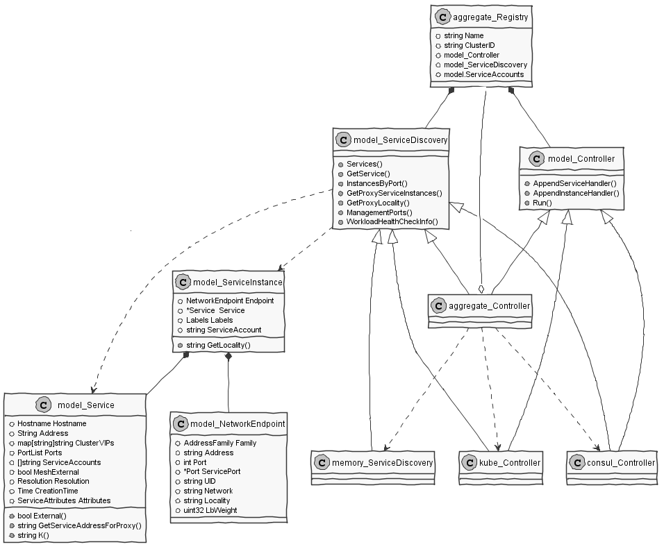 Istio源码中,和服务注册相关的对象如下面的UML类图所示。