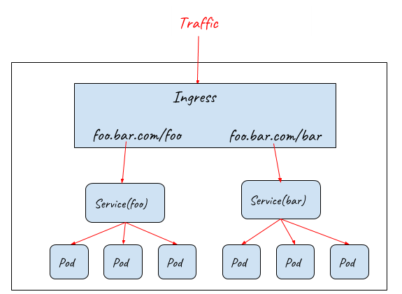 To solve these problems, Kubernetes Ingress resource is used to declare an OSI layer 7 load balancer, which can understand HTTP protocol and dispatch inbound traffic based on the HTTP URL or Host.