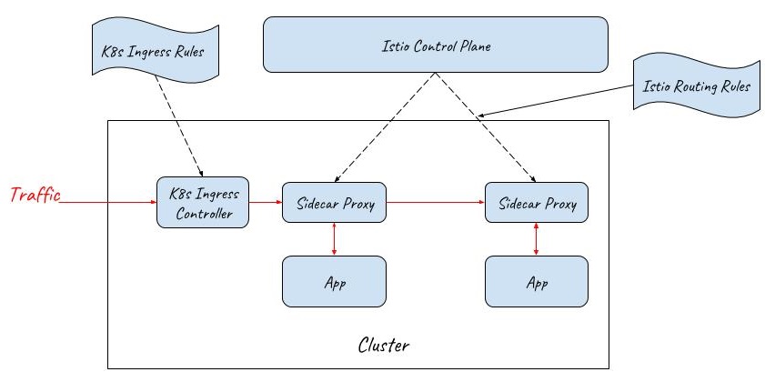- Kubernetes Ingress can’t be managed by the Istio control plane. It needs to be configured with the Kubernetes Ingress rules. As a result, there are two sets of independent routing configurations in the system, one for the entrance and one for the sidecar proxies inside the mesh. The operations of the service mesh are much more complicated in this way.