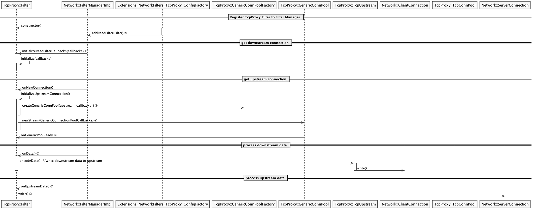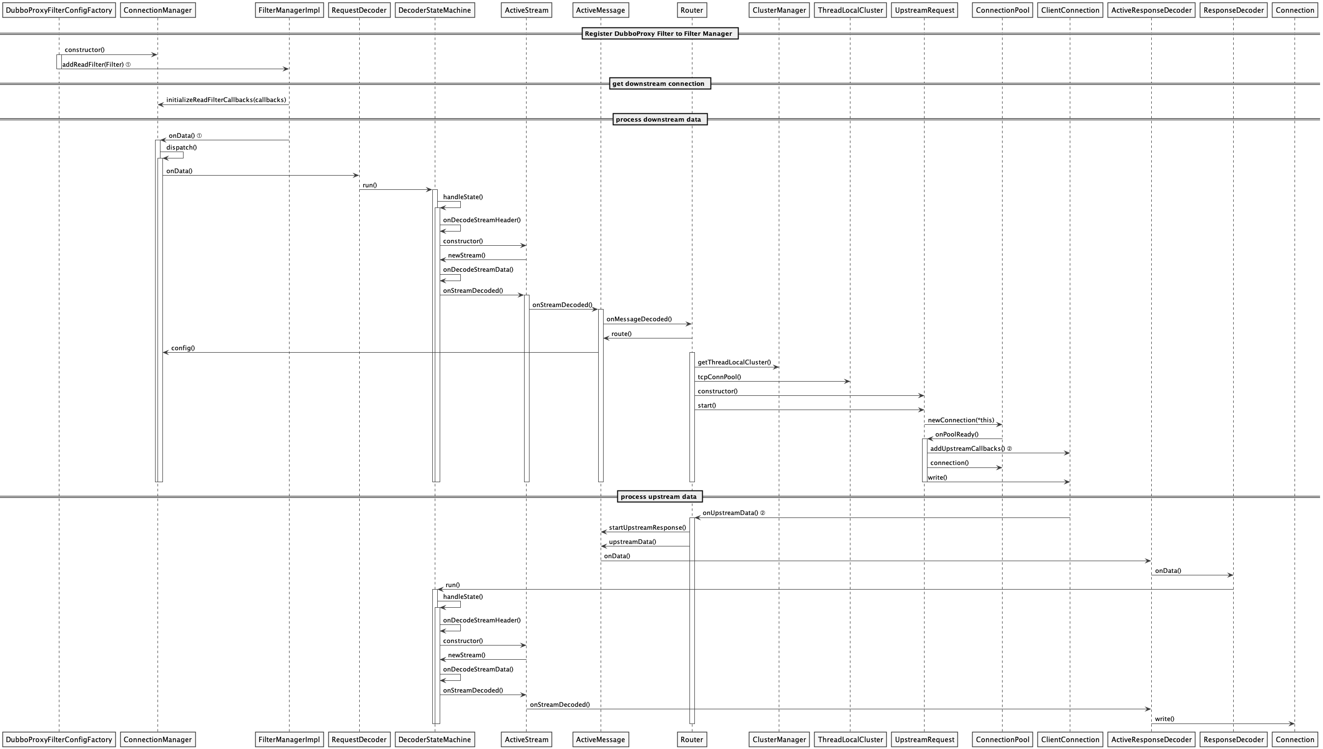 最近在实现 MetaProtocol 时阅读了 Envoy 相关的一些源码。这里将一些重要流程的时序图记录下来,以备后续查看。